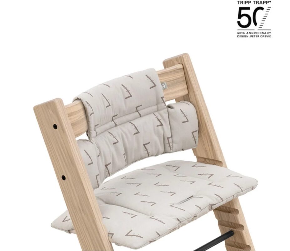 The 50th Anniversary classic cushion features side-profile Tripp Trapp icons on a dark beige background. This cushion perfectly compliments the Tripp Trapp 50th Anniversary chair and the tones created by the ash wood it’s made out of.