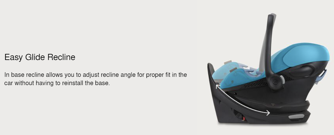 • EASY GLIDE RECLINE: In base recline allows you to adjust recline angle for proper fit in the car without having to re-install the base