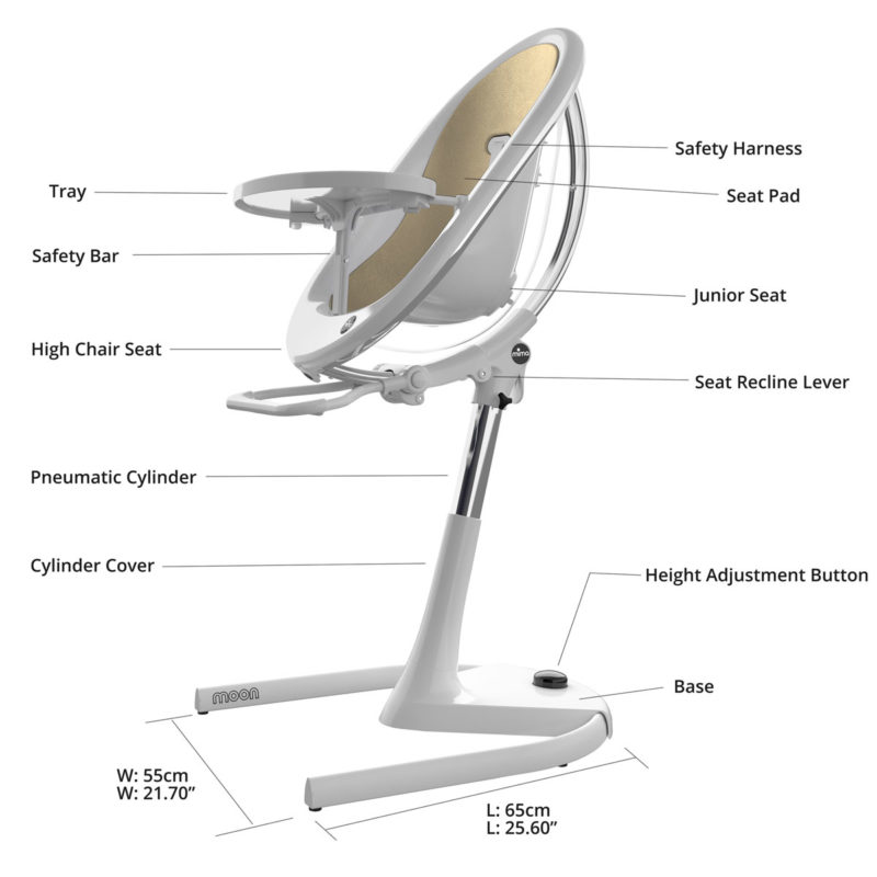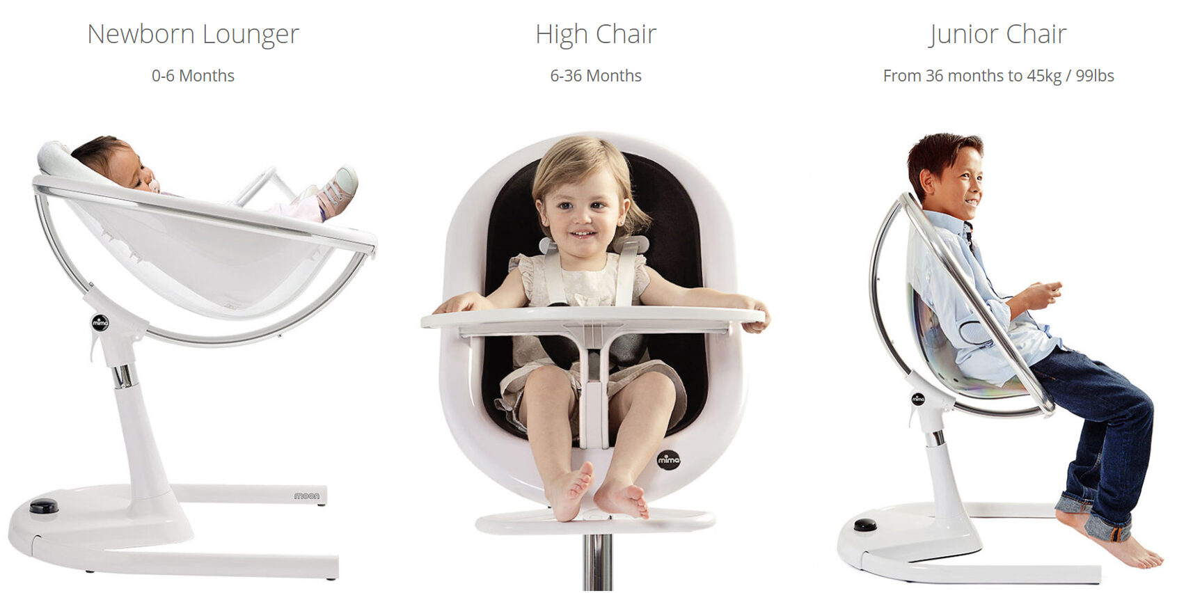 Use the Mima Moon 2G as a newborn lounger, a high chair, and a junior chair as your child grows!